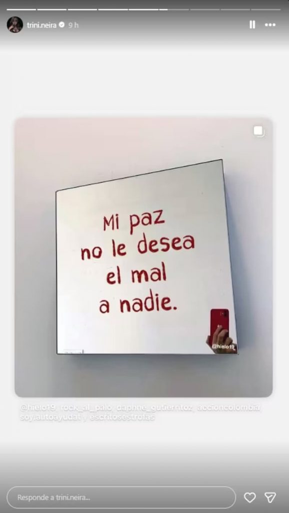 En medio del revuelo mediático, Trinidad Neira no se ha referido públicamente a la polémica, aunque sí compartió un mensaje en sus historias de Instagram que muchos interpretaron como una posible reacción frente a las acusaciones.