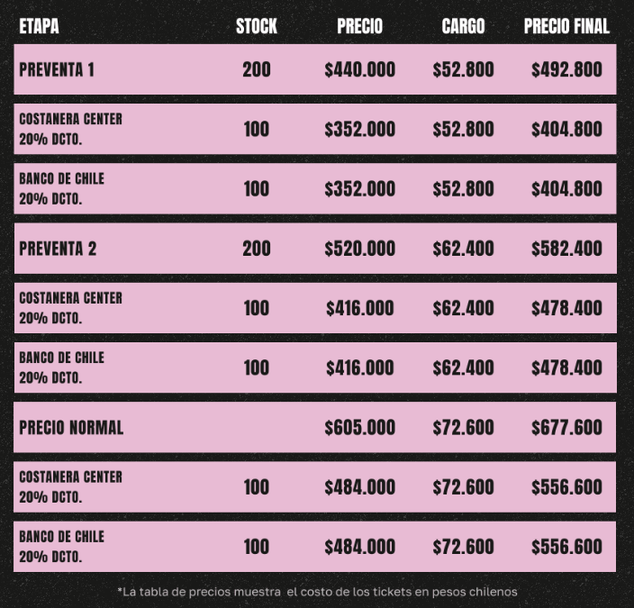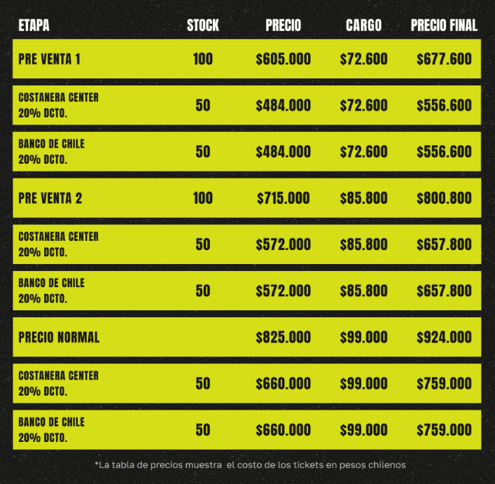 En la instancia, los fanáticos la música podrán acceder a los distintos pases, los cuales abarcan diversos precios.