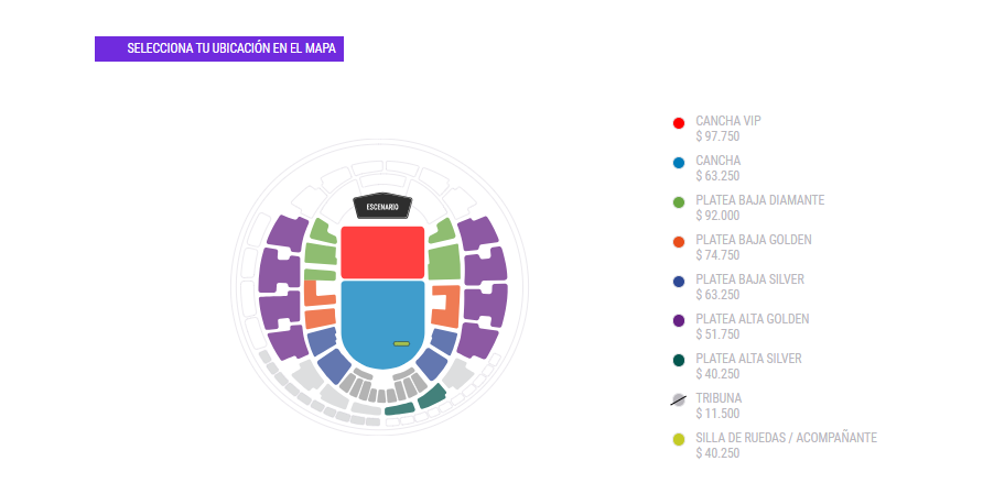 En tanto, el show contará con nueve localidades. Los precios van desde los $11.500 en Tribuna hasta $97.750 en Cancha Vip.