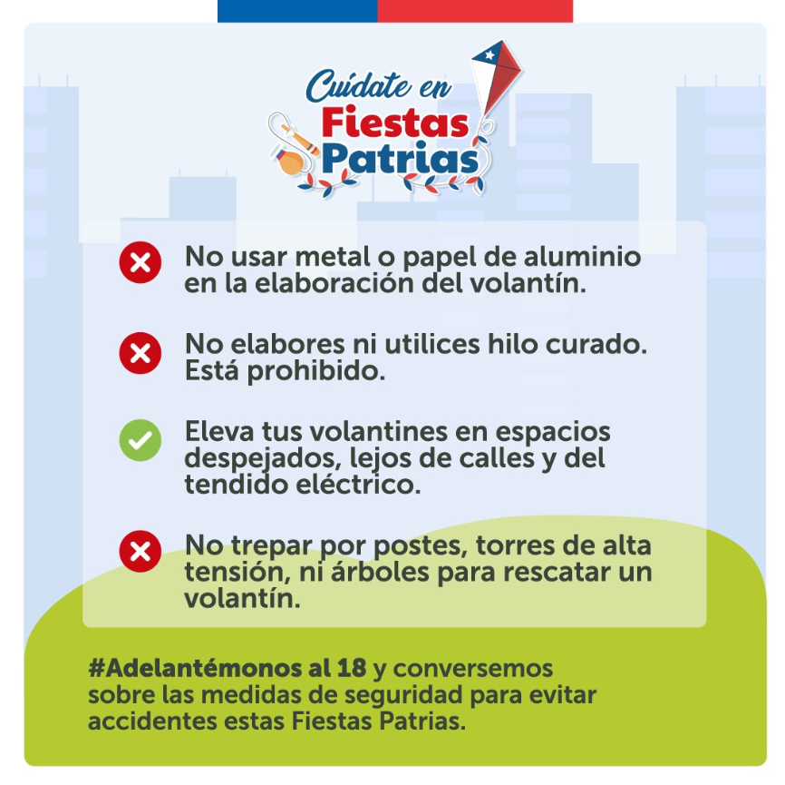 “Asegurémonos que niñas, niños y adolescentes tengan un volantín seguro. # Adelantémonosal18 y conversemos sobre las medidas de seguridad para evitar accidentes estas Fiestas Patrias”, escribieron en su cuenta de ‘X’ (ex Twitter).