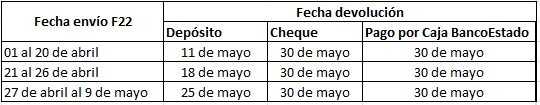 En términos de fechas, quienes declaren su renta entre el 1 y el 20 de abril, podrán recibir su devolución el 11 de mayo.