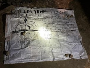 En el sitio del ataque, ubicado en el sector de Pitrilco, a cinco kilómetros al sur de Los Álamos, se halló un lienzo solicitando la libertad de Luis Tranamil, quien fue formalizado por el homicidio del carabinero Eugenio Naín. El atentado fue reivindicado por la organización Weichan Auka Mapu (WAM), según consigna el escrito.