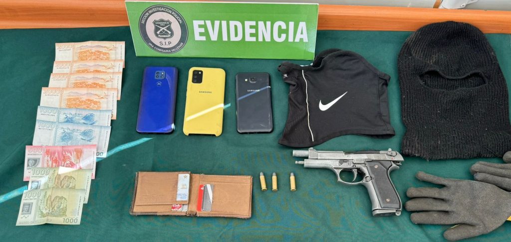 Esto permitió la identificación del vehículo en el que se trasladaban los delincuentes, quienes fueron interceptados por Carabineros en la Avenida Costanera, intersección con la calle Los Pimientos.