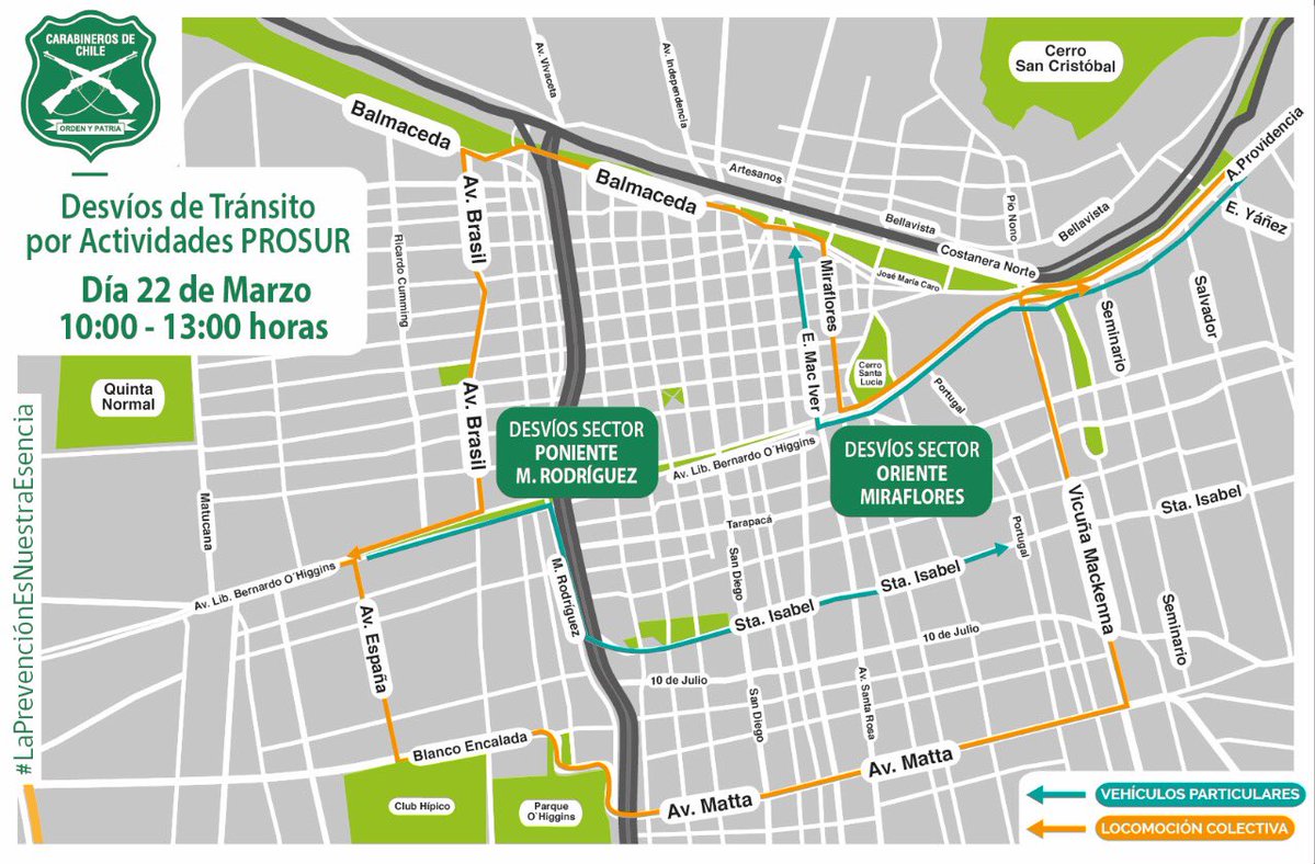 Por ello, Carabineros informó de una serie de desvíos de tránsito que comenzarán durante esta mañana y se extenderán hasta las 13 horas, para garantizar el traslado expedito de las autoridades.