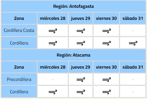 #Aviso A319/2024: [26/ago 14:53] Viento Normal a Moderado en zonas de las regiones de Antofagasta y Atacama https://t.co/BMNQh9StrK pic.twitter.com/ISG0U8mex6