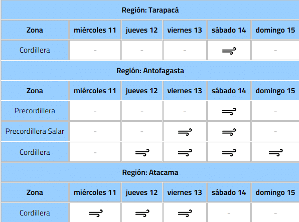 #Aviso A338-1/2024 (actualización): [11/sep 15:00] Viento Normal a Moderado en zonas de las regiones de Tarapacá, Antofagasta y Atacama https://t.co/LQO4HoyIuE pic.twitter.com/FlwNhYrTVC