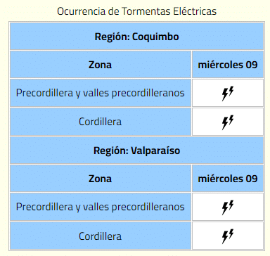 La Dirección Meteorológica de Chile (DMC) actualizó su aviso por probables tormentas eléctricas en dos regiones del país.