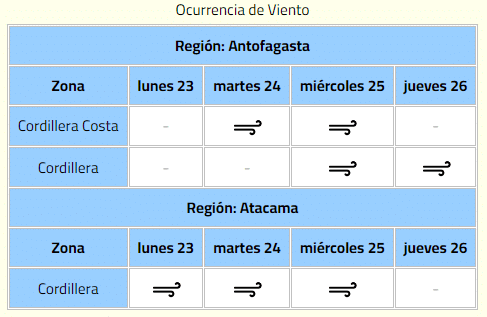 #Aviso A356-1/2024 (actualización): [23/sep 14:54] Viento Normal a Moderado en zonas de las regiones de Antofagasta y Atacama https://t.co/Dq43CEqIRN pic.twitter.com/PWOnHIS3qR