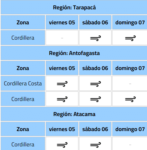 La Dirección Meteorológica de Chile (DMC) emitió un aviso por viento normal a moderado en tres regiones del país.