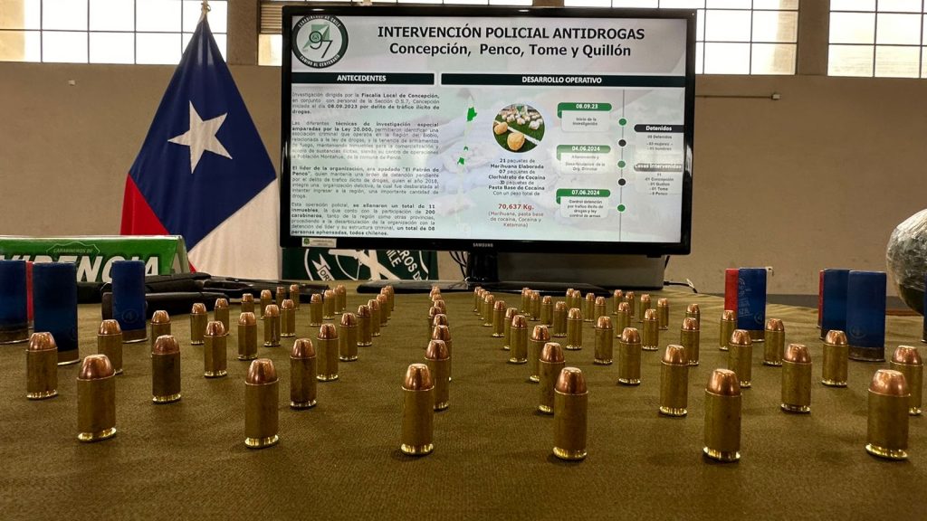 En concreto, el operativo realizado de manera simultánea en Concepción, Penco, Tomé y Quillón, permitió incautar 75 kilos de sustancias ilícitas entre las que se encontraba marihuana, pasta base de cocaína y ketamina. Lo cual fue posible tras una investigación del OS7 de Carabineros que se extendía desde septiembre de 2023.
