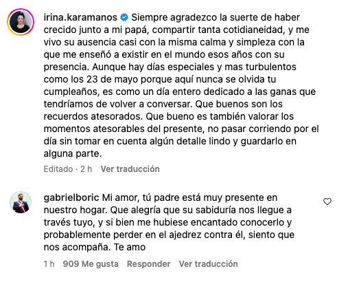 La cientista política Irina Karamanos, pareja del Presidente Gabriel Boric, compartió un sensible mensaje en sus redes sociales para recordar a su padre fallecido en el día de su cumpleaños.