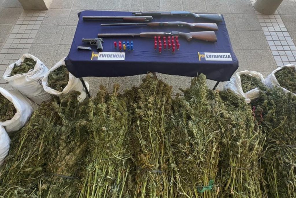 “Fueron más de 5 meses de investigación que nos permitió establecer la producción, cultivo, cosecha y resguardo de plantaciones ilegales de cannabis en Quilimarí, en coordinación con la fiscalía local. Con la evidencia desarrollamos la Operación Mina Verde para intervenir dos domicilios particulares en un predio rural, donde incautamos armas y municiones, además de 237 kilos de cannabis procesada y lista para su comercialización, avaluada en más de mil millones de pesos”, informó el prefecto Mauricio Jorquera, jefe de la Prefectura Antinarcóticos y Contra el Crimen Organizado Centro.