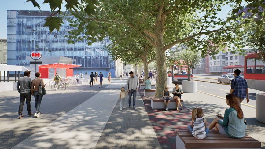 - Acceso al Metro Universidad Católica: Se revitalizará la salida sur del metro, que contempla 1.465 m², hasta ahora dividida en zona de estacionamientos y otra de circulación peatonal, con pavimentos sin continuidad y en mal estado.