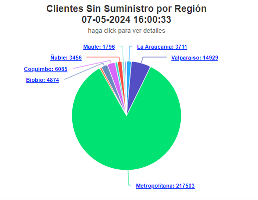 La Superintendencia de Electricidad y Combustibles (SEC) informó que, a las 16:00 horas de este martes, hay más de 200 mil clientes sin suministro eléctrico en la Región Metropolitana.