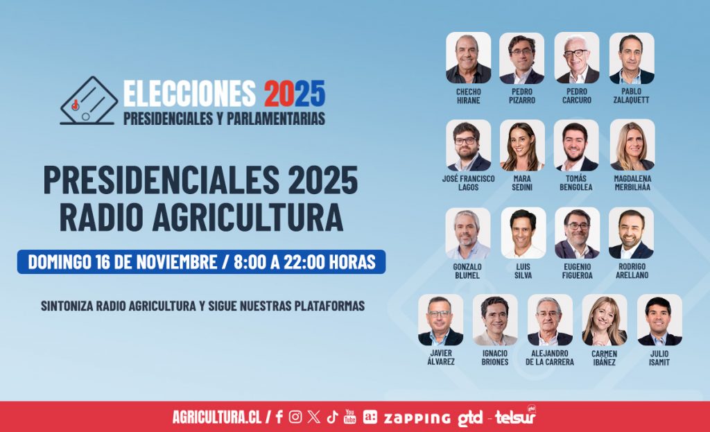 La transmisión estará disponible en agricultura.cl, redes sociales y todas sus plataformas, con un equipo de reconocidos periodistas y analistas.