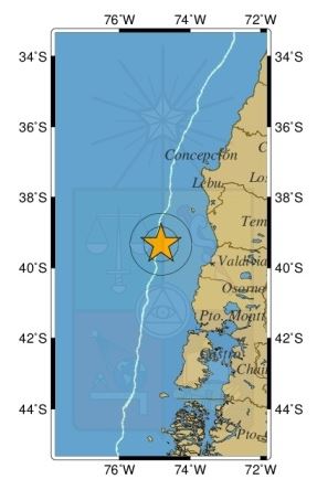 Un sismo de mediana intensidad se percibió a las 18:39 horas en las regiones de Ñuble, Biobío, La Araucanía, Los Ríos y Los Lagos