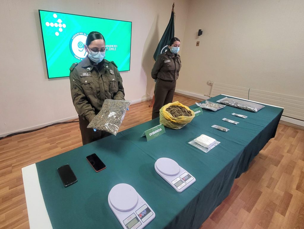Durante el allanamiento, Carabineros encontró 3.178 gramos de marihuana elaborada y 482 gramos de clorhidrato de cocaína, además de balanzas digitales y teléfonos móviles. Estos elementos permitieron sacar de circulación una gran cantidad de droga destinada a la comercialización.