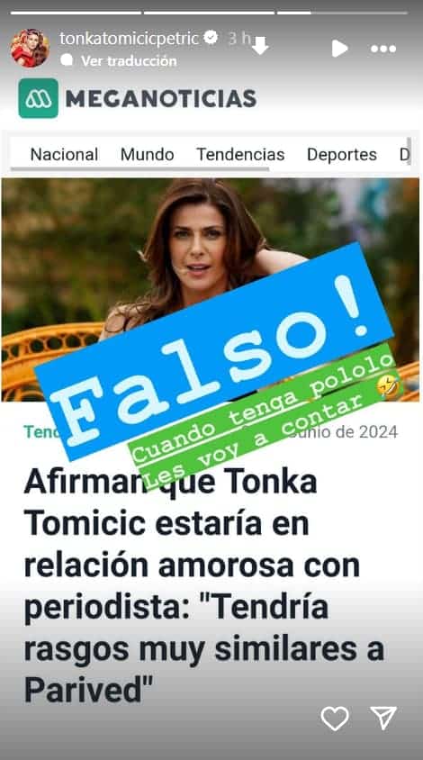 Ante esto, Tonka Tomicic decidió romper el silencio y aclarar la situación a través de su cuenta de Instagram.