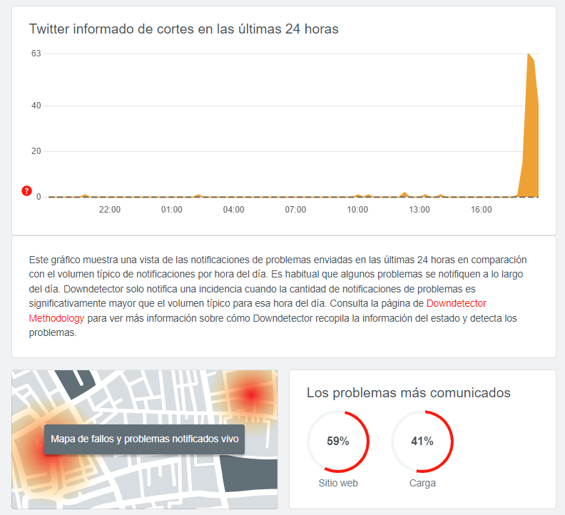 Según el sitio DownDetector, hubo un 56% de usuarios que reportaron anomalías en los navegadores y un 41% con inconvenientes de carga.